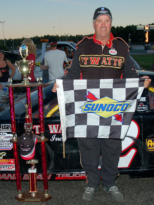 and Roadrunner Saturday Feature Results (Naples, ME - September 23, 2007) Saturday was qualifying day for all six divisions plus the Roadrunner and Wildcat features. In the T & K and Sons Concrete 25, it was Edward Pierce in the #77 of Alfred, Me taking off to an early lead, but Tim Caswell of Waterboro in the #47 soon tracked him down and took the lead. Caswell held off Pierce and a hard charging Todd Lefebvre of Gorham in the #26 to take the win. Shawn bracket of Gray was fourth in the #31, and David Palmer of Waterboro brought the #01 home fifth. The Wildcats rolled out of the pits after the field of 53 cars was thinned down to the 31 qualifiers in a series of five heat races for the Victory Lane Indoor Karting 75. Dan Wink of N. Berwick, ME finished second in the 2006 Wildcat feature and was looking to go one better this time. He put his win in the first heat to good use as he lead from the pole and moved out to a two car lead in the first few laps. However, his lead soon went away as a big pileup off turn two put six cars into the backstretch wall. On the restart, Wink again took off with the #90 of Dickie Randall of Limington right behind. By lap 10, Dave Brannon of Lisbon in the #14, the 2006 Wiscasset Raceway champion, joined the top two. On lap 20, something on the #12 of Skip Tripp of Lisbon broke and oiled down turn one sending cars scattering over the banking and through the infield. After a caution on lap 33 for a one car spin in turn one, the #03 of Maurice Young of Windsor made his way to second past Randall who got caught on the outside and was freight-trained back to fourth. The top four were moving away from the field as the reached the halfway mark. On lap 41 Randall took third back from Brannon as the top four were cruising nose to tail, and by lap 50 Alby Ovitt of Barrington, NH in the #35 came from deep in the field to join the fray. As the laps wound down everyone was waiting for someone to make a move to challenge Wink, but they were all afraid of getting caught on the outside like Randall did earlier. However, as we got to lap 65, Ovitt, the #27 of Kenny Harrison of Freeport, ME, the #113 of Tommy Tompkins of Carthage had joined the parade at the front. With ten laps to go, it was Wink, Young, Randall, Brannon, Ovitt, Harrison, and Tompkins. Ovitt decided it was time to go and made a move to the outside on Brannon which allowed Harrison and Tompkins to slip by Ovitt on the inside. Meanwhile, up front Young was knocking on Wink's bumper as they came down the backstretch with two to go, but Wink had enough left to hold young off and take the win. Young was second, followed by Brannon, Randall, Harrison, Tompkins, Ovitt, David Wildes of Limington in the #29 was eighth, Ronnie Carbeil, Jr of E. Waterboro in the 12X ninth, and Michael Poole of Hollis in the #0 rounded out the top ten.