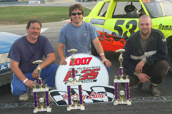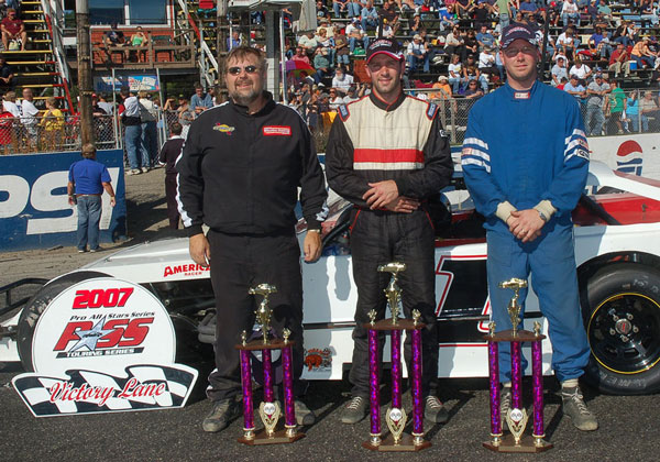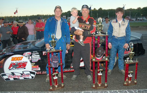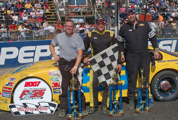 Continues Family Tradition on 400 Weekend Berry, Benjamin, Shaw, Clark and Moore Also Contend for Beech Ridge Victory NAPLES, ME (September 24, 2007) ' During the inaugural PASS 400 weekend at Beech Ridge Motor Speedway (ME) in 2005, Mike Rowe emerged as the big winner. He captured the 300-lap PASS North Super Late Model event and put the exclamation point on a great season that consisted of a total of five PASS North victories. In 2006, it was Mike's son, Ben Rowe, who won the 300-lap SLM event at Beech Ridge. On Sunday, the race victory once again stayed in the family, but it was the father who knew best this time around again, with Mike Rowe taking the $10,000 victory in his #2 PT Watts machine. Mike Rowe has no problem with the trend that is emerging with the biggest race on the PASS North schedule. 'That's good,' Rowe laughed. 'Benji can go and win it next year. I'll finish second.' Because of the fact that the Rowes have teamed up to win each season, you might think that the competition is only between those two drivers. That was hardly true on Sunday though. Mike Rowe might have become a two-time winner of the race, but he had plenty of competition for the victory. DJ Shaw, Kelly Moore, Ben Rowe, Travis Benjamin, Steve Berry and Cassius Clark all led laps in the SLM feature on Sunday afternoon. Mike Rowe did lead laps before the halfway mark, but did not appear to have anything close to a dominant card early on. 'There were a lot of good cars out there,' said Mike Rowe. 'I was a little tight on the first set of tires. I came in and the crew loosened it up a little bit. They did a good job. It was a little bit too loose then, I came back in and they adjusted it. After that, it was awesome. It worked out well.' Rowe's strongest competition late in the race came from the #15 car of Berry. The former Beech Ridge regular, and PASS North rookie, put up a strong fight for the lead with Rowe. The two swapped the lead several times and were running side-by-side while battling for the top spot with 20 laps to go. That is when Rowe slid up into Berry's car, who cut down a left front tire. Berry spun off the turn four banking with the flat and was left with a finish of 13th. 'That was just wicked hard racing,' said Rowe. 'Steve and I were running ragged and that sort of thing happens sometimes. It was one of those deals and I hope that we can iron things out. He's a really nice guy.' Another really nice guy was then left to give Rowe his final challenge. Low-buck racer Alan Wilson, the 2005 PASS North Rookie of the Year, charged through the field with his #53 to battle with Rowe at the end. The laps clicked down too quickly for Wilson though, and he was left with a second-place finish. Teenager Derek Ramstrom filled out the podium after starting at the rear of the field with a provisional. He was followed to the finish by Cassius Clark and Trevor Sanborn, who also started deep in the pack with the other PASS North provisional that was awarded after Saturday's qualifying races. Rowe was one of four feature winners on Sunday. J.R. Baril held off Tony Ricci by just inches to win the 100-lap PASS Outlaw Late Model feature, former Beech Ridge Super Sportsman champion Chris Smith won the 50-lap PASS Modified feature. Terry Merrill was awarded the victory in the PASS Pullen Heavy Industries Sportsmen 100-lap feature after Mike Landry crossed the finish line first, but was disqualified for an unapproved engine part. The PASS North Super Late Models return to action in two weeks, with a visit to All-Star Speedway in Epping, New Hampshire on October 6th. |