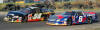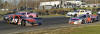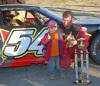 ![]() Super Late Models: L to R - Ben Rowe #4, 2nd; Cassius Clark #8 DQ'd; and Johnny Clark #54, 1st. |