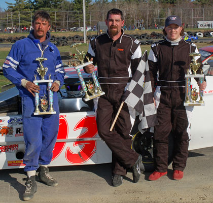 Once Cassius Clark took the lead, he ran away with it on the way to his unofficial victory. At one point he lapped all but the second-place car and was getting ready to lap that entry, too, when the caution flag came out for a frontstretch incident between Bill Penfold and Trevor Sanborn. “We had such a long green-flag run there, and my car was really good,” said Cassius Clark. “You have those days where the car is perfect and this was one of those. This thing was just hooked up.” A late race stream of caution periods brought out by various bumps, spins and encounters with the Speedway 95 tire wall brought several other cars back on the lead lap, thanks to the “lucky dog” rule of letting the highest running lapped car gain a lap on every caution. There was even a green-white-checkered finish that almost allowed Johnny Clark to make a bid for the lead, but in the end nothing was going to ruin Cassius Clark’s day. “We were going to change the right-front tire on that last caution, but we didn’t have time,” said Johnny Clark. “They were crossing over [for the restart]. I finished right behind Cassius by a few car lengths and if I had a right-front tire that would stick, I think that I could have gotten to his rear bumper. But we had to bite the bullet and finish second instead.”