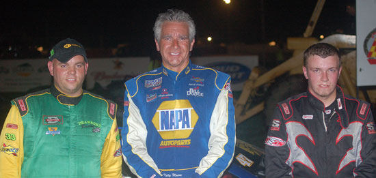 PASS North Victory to His Long Resume Summerfest Victory Comes Down to Close Battle between Veteran & Rookie NAPLES, ME (July 30, 2007) – Kelly Moore has done a lot in his career. He’s raced at tracks from Daytona to Indianapolis Raceway Park to Antigonish, Nova Scotia. He’s set the all-time pole and victory records in the NASCAR Busch North/Busch East Series – winning his most recent event last summer at New Hampshire International Speedway. He won a NASCAR Touring championship. For years, he was even referred to by many as the “Dale Earnhardt of Maine,” thanks to his always-exciting and aggressive driving style and the fact that he would usually be driving a black Chevrolet. Now at the age of 48, Moore is finding that there isn’t much that he has not done in his career. But somehow he found an accomplishment to add to his resume this past weekend. On Saturday night at Riverside Speedway in Groveton, New Hampshire, Moore won the Miller Lite Summerfest event for the Pro All Stars Series (PASS) Super Late Model tour. It was the veteran’s first career PASS North victory. But to Moore, the victory wasn’t about records or accomplishments. It was about having fun. “That’s true. I never even thought of that,” said Moore after the race, when he was asked about winning in PASS North for the first time. “I just love to race. I like the competition and I like the camaraderie with the other drivers. It’s fun. If I come and have a good time, I’ll come again. If I come and don’t have a good time, I’ll just take a couple of weeks off. I just want to go race and have a good time. I don’t want to have the pressure of racing every weekend. I did that for 28 years racing for points. It wasn’t in the Cup Series, but it was weekly and in the Busch North Series from 1987 to 2005. That’s a long time.” Moore has been running a limited schedule of PASS North events this season, and the Riverside race was one that he had his eye on from the beginning. “We planned on coming over here,” said Moore. “At the beginning of the year, I looked at the schedule and picked out some races. I even picked out Speedway 95, but something changed and I couldn’t go there. We’re going to go to Beech Ridge; I’d like to go to Star. I like going to the races that are close – two, three or four hours away. I’d like to go to Antigonish, but I don’t like the ride. I’ve done enough of that. I’ve raced at Indianapolis Raceway Park, Darlington, Richmond and then gone back to Maine. I’ve done that weekend after weekend after weekend.” Moore also likes the competitors that he faces on the PASS North circuit. “These guys have all raced a long time too and they like to race and have fun,” said Moore. “They’re a great bunch of guys to race with for the most part. You’ll always have a little spat here and there, but that’s racing.” There were no spats that involved Moore on this evening, though. Early on, rookie Stephen Barry led almost until the halfway mark. Then fellow rookie Trevor Sanborn took over the top spot and checked out to a lead that was nearly a straightaway long. Sanborn had shown promise in his heat race, when he finished second to Mike Rowe. In the feature, though, Sanborn really showed off the speed of his #29 Cushman Competition Ford while Moore paced himself. “The car was decent, but it wasn’t a car that could run right to the front,” said Moore. “It probably would have been if I beat it up. But I like to hold on to the car and save it for the end. When I was young, I used to run the car hard. So I was trying to race the racetrack and not the other competitors tonight and that paid off for us.” “The car was going good,” said Sanborn. “It was our first time here and it worked out well. In the heat race, I was all over Mike [Rowe], but I couldn’t quite get him. So come feature time, we wanted to show these boys what we had. I ended up getting Steve Berry on the outside on that last restart and had quite a lead on him. Then the lights went out.” When Sanborn says that the lights went out, he means that literally. On lap 97, lights mounted on six poles in the infield went dark. The race was flagged yellow immediately and all of the competitors slowed down safely using the lighting from the grandstands and pit area as their only illumination. The problem was corrected and the race went back to green soon after. When the race resumed, Sanborn found Moore right on his rear bumper. On lap 103, Moore dove under Sanborn to take the lead. “Kelly got back up there and got underneath me,” said Sanborn. “We did all that we could do to hold him off. But he was fast. He had a crate motor and that was a little bit of an advantage, but it wasn’t a big deal. We just hung in there and finished second.” Sanborn did not lead another lap in the race, but he didn’t give up either. The two fought a hard battle for the victory, leading a breakaway pack that grew to nine cars in length before the checkered flag waved. Moore and Sanborn raced hard, providing entertainment for the fans and enjoyment for themselves. “I tried to race him good and clean,” said Moore. “I think that he raced me clean. There was a little bit of contact there, but it wasn’t a pushing and shoving match. It was just good, hard racing and that’s the kind of racing that I like to do.” “That was different,” said Sanborn of competing against a driver who he had grown up watching. “Kelly knows his way around the track. There’s no doubt about that. I was trying to follow him and beat him. I wanted to chase him down. I’ve watched him race since I was a little kid. That was fun.” Little did Sanborn know it, but Moore had also been watching him as well. “I watched him run the heat races and I thought that he did a good job,” said Moore. “I try to watch people and see what they do and don’t do. I try to see how they act and react.” At the line,