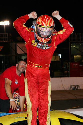 Loden celebrates in victory lane at Concord Speedway