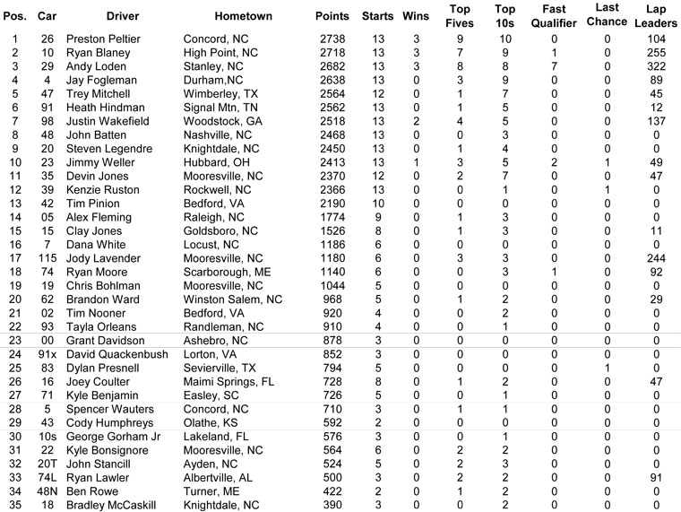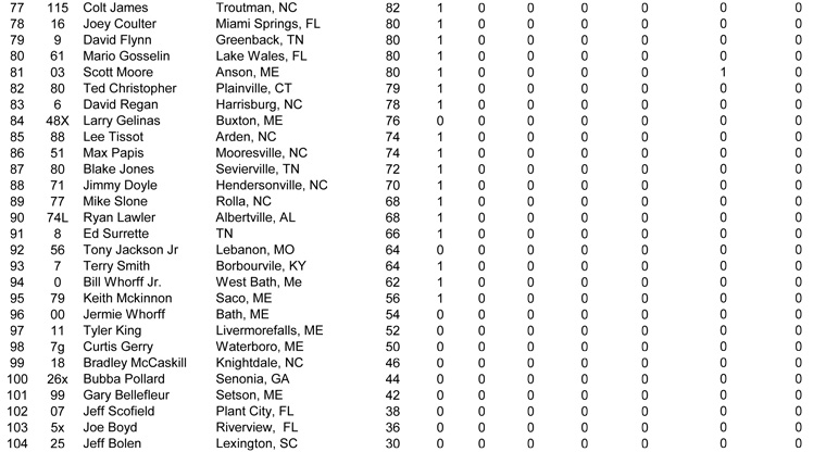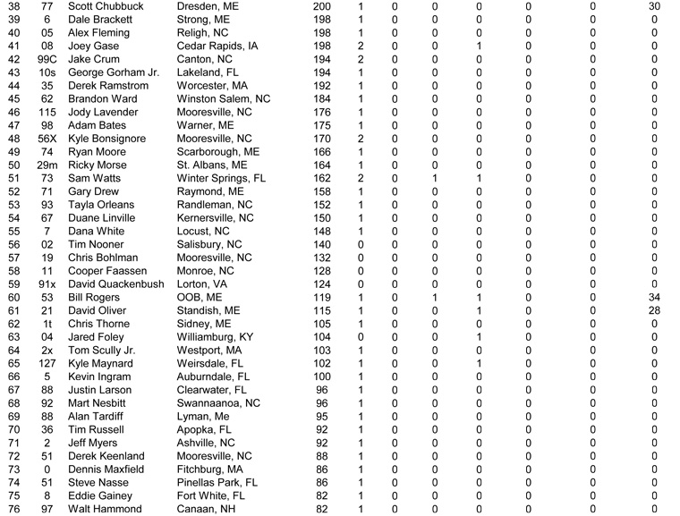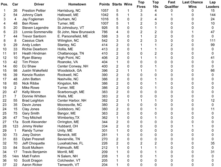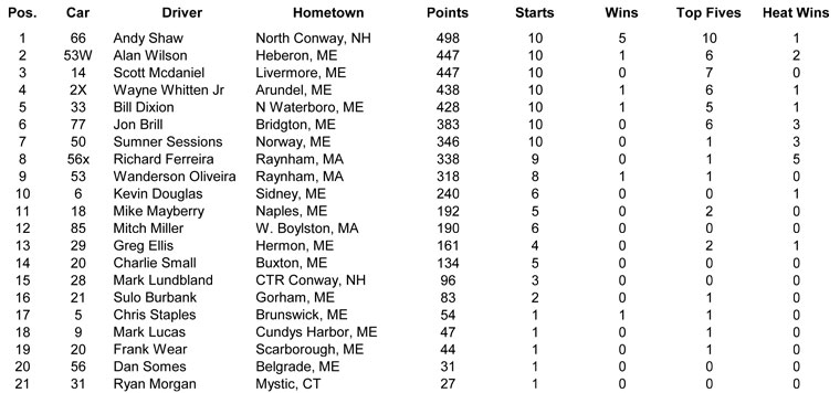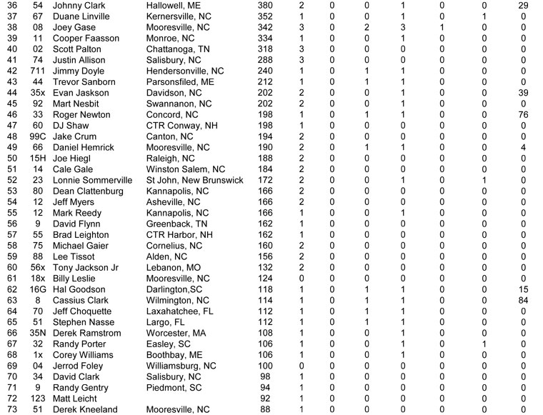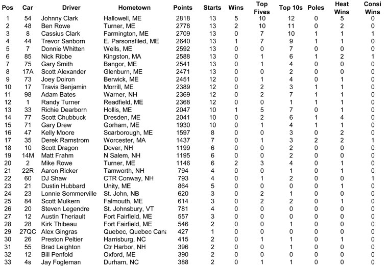 ![]() FINAL 2010 NORTH SLM POINTS STANDINGS | 2009 | 2008 | 2007 | 2006 | 2005 | 2004 | 2003 | 2002 | 2001| |