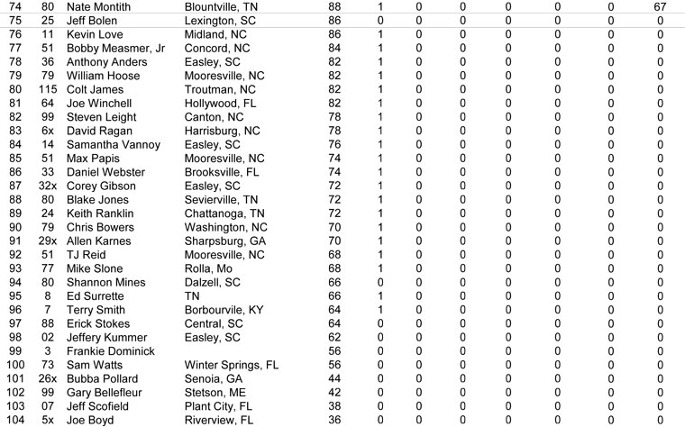 ![]() FINAL 2010 SOUTH SLM POINTS STANDINGS | 2009 | 2008 | 2007 | 2006 | |