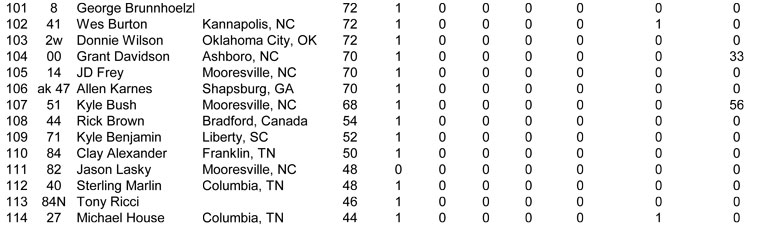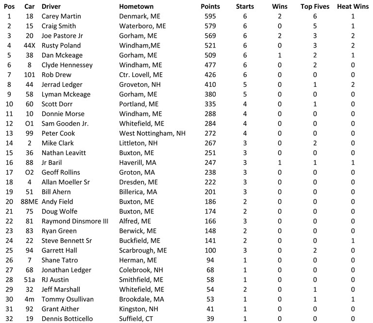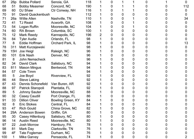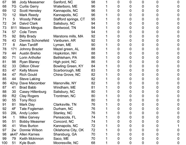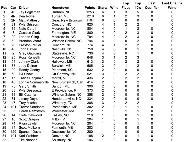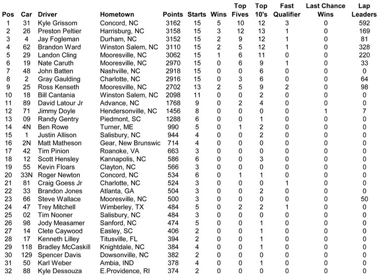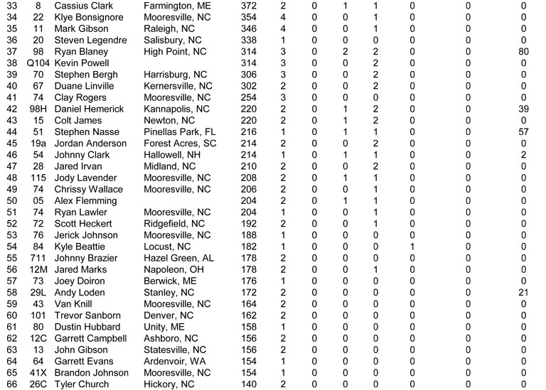 ![]() 2012 SOUTH SLM POINTS STANDINGS | 2011 | 2010 | 2009 | 2008 | 2007 | 2006 | |