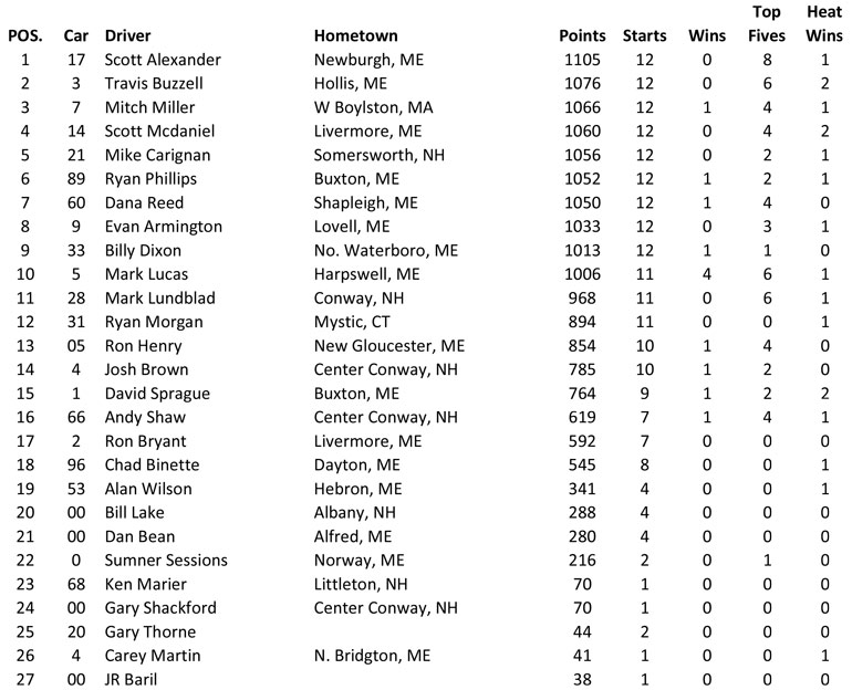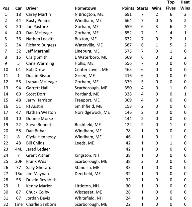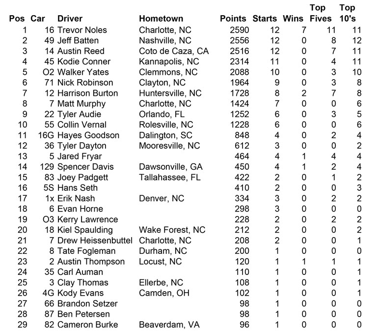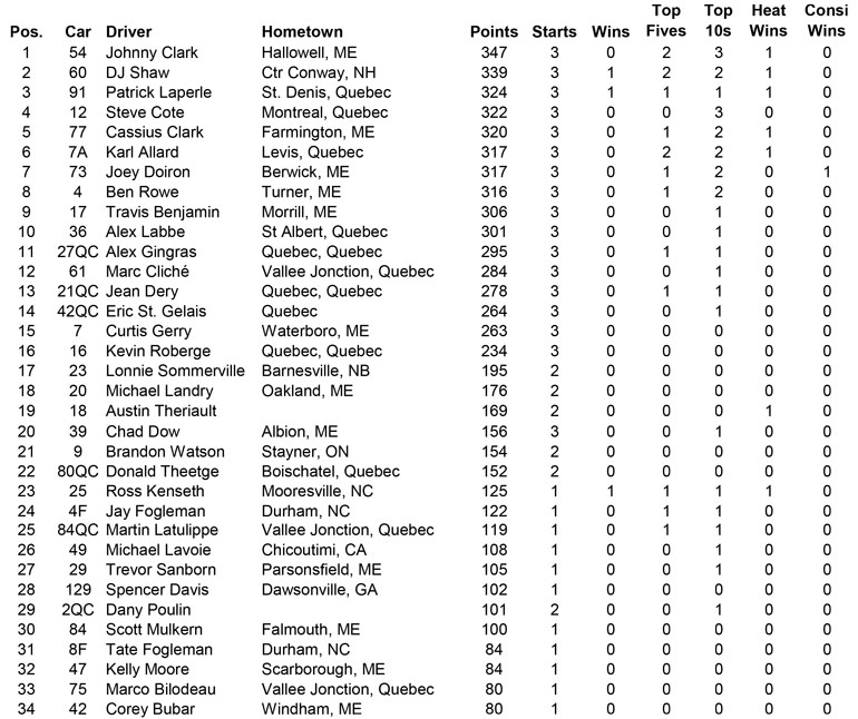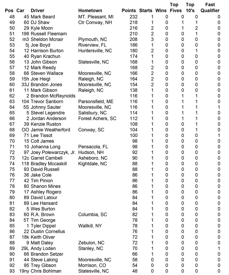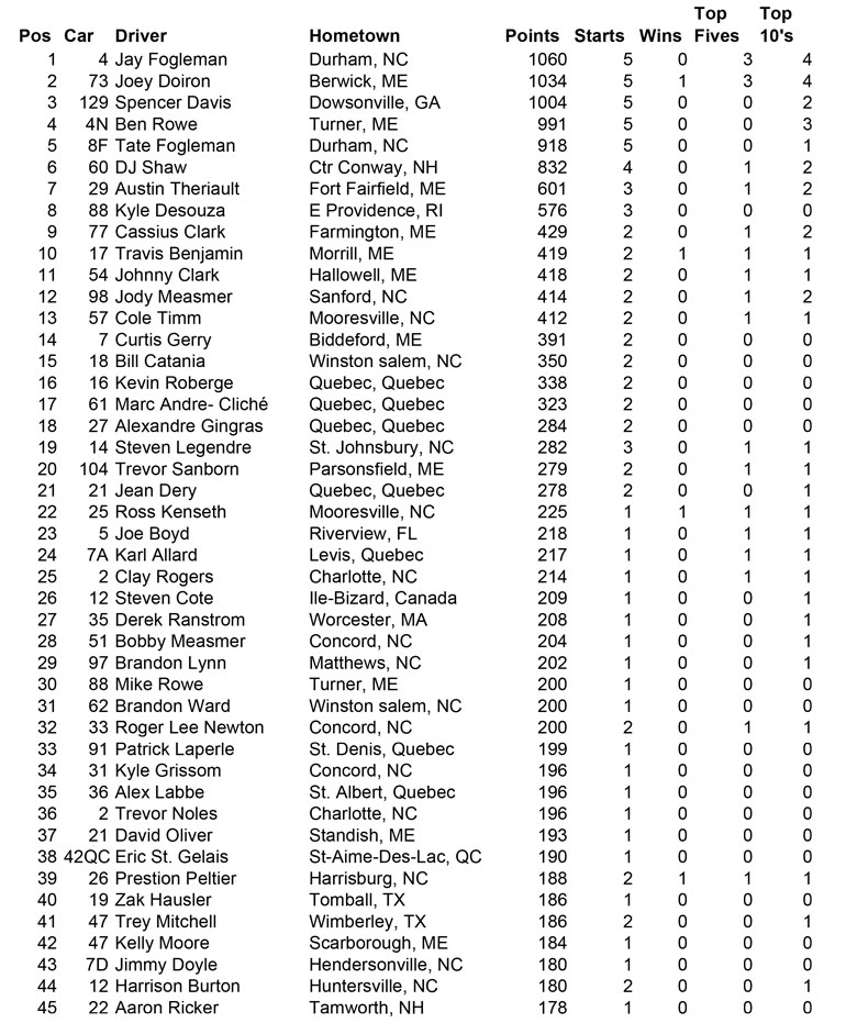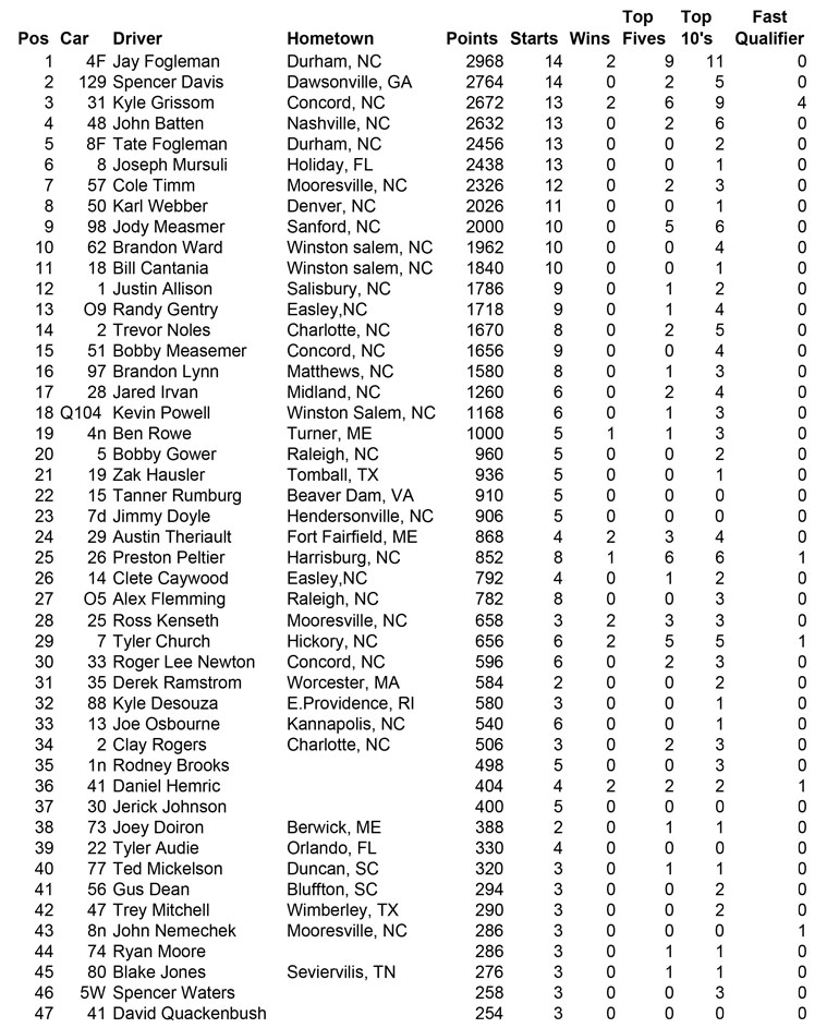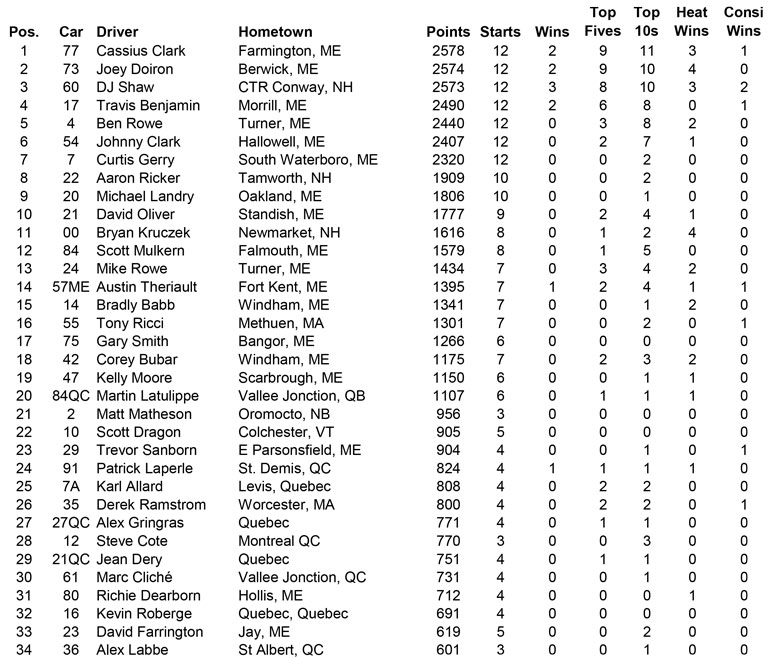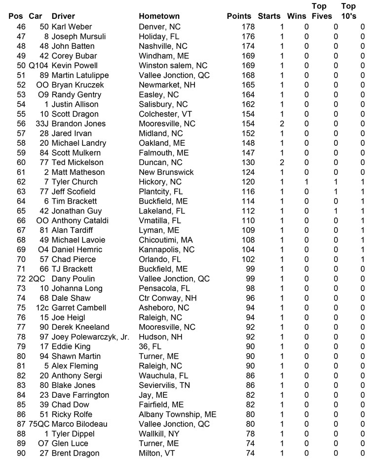 ![]() 2013 PASS PRO LATE MODELS POINTS STANDINGS |