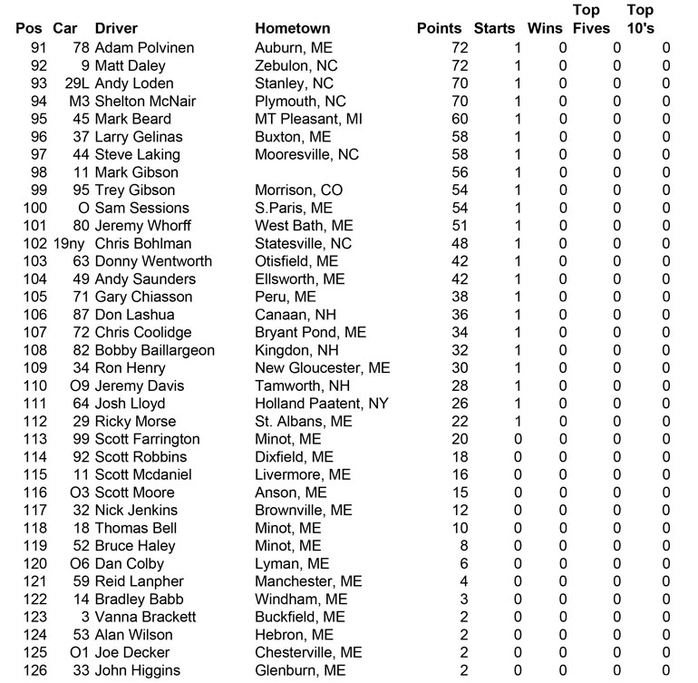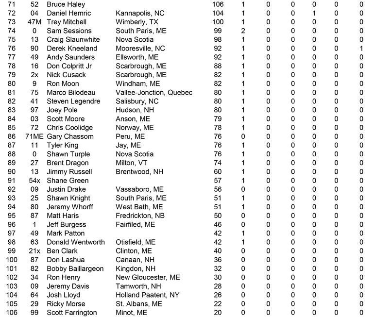 ![]() 2013 NORTH SLM POINTS STANDINGS | 2013 North SLM Points Funds HERE | | 2012 | 2011 | 2010 | 2009 | 2008 | 2007 | 2006 | 2005 | 2004 | 2003 | 2002 | 2001| |