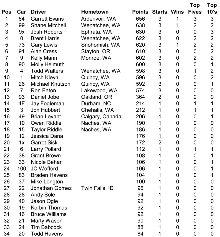 ![]() 2013 NORTHWEST SLM POINTS STANDINGS |