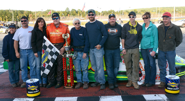 Plains Speedway. An eighth-place finish was plenty good enough for Maine Hall of Fame racer Mike Rowe to add yet another championship to his extensive short track racing resume, this one the AIM Recycling USA PASS North Super Late Model title. Rowe, who is also the winningest driver in the history of Oxford Plains Speedway and a seven-time track champion in the top class, had previously won PASS South and PASS National titles, but this was his first Pro All Stars Series championship won on native Maine pavement. Rowe's title comes in his first year driving for Petit Motorsports. The team had competed for several seasons with several drivers, never finding victory lane until hooking up with Rowe for the 2015 campaign. The Rowe/Petit Motorsports combination went to victory lane three times en route to their championship. For Taylor, a nine-time track champion in the top class at Oxford Plains Speedway, it was an emotional victory, the first since the passing of his father, Conrad, in January. "It took us until the last race of the season, but we did it," the winner said, wrapping up a salute to his dad, always instrumental in the operation of the wildly-successful race team. Taylor started the race from the pole, inheriting the first heat race win when Trevor Sanborn and Gunnar Rowe both were too low in post-race technical inspection. Taylor swapped the race lead with Dixfield's Scott Robbins in the early stages of the 150-lapper, but soon started to pull away from the field, opening up a half-lap lead over a torrid battle for second position between Robbins and Jay's Dave Farrington, Jr. When a late-race caution flag set up a two-lap shootout, Taylor had a comfortable cushion of lapped cars to maintain his lead. Farrington managed to hold on to second position despite being spun at the checkered flag, with a flat tire. Oxford 250 champion Glen Luce of Turner drove from 16th starting position to an impressive third-place finish. Robbins ended up with a fourth-place finish, with 2015 Oxford Plains Speedway Super Late Model Champion Timmy Brackett of Buckfield rounding out the top five. Joey Doiron of Berwick, Reid Lanpher of Manchester, Mike Rowe of Turner, Scott Mulkern of Falmouth and Waterford's Spencer Morse filled out the top ten. The race attracted 44 entrants, with 35 cars starting the 150-lap main event. OPS Mods champion Ryan Robbins prevailed in the 30-lap championship finale for the PASS touring Modifieds, outrunning Lebanon's Mike Carigan to the checkered flag. Andy Shaw of Center Conway, New Hampshire successfully defended his PASS Modified title, driving the Sumner Sessions 0. Shaw claimed the third-place race trophy, following Robbins and Carigan under the checkered flag. Newburgh's Scott Alexander, who ended up five points behind Shaw in the season-long rankings, finished fourth, with the top five filled out by Westbrook's Matty Sanborn. Cory Hall made the long trip home to Jolicure, New Brunswick a happy ride after winning the 25-lap Legends Cars main event. Hall inherited the lead when Ryan Kuhn pitted after losing a muffler while leading. Kuhn made a late charge from the rear of the field to finish up in second position. Colby Meserve of Buxton celebrated his birthday with a third-place finish. Brandon Packard of Bridgewater, Massachusetts and Windham's Dillon Varney rounded out the top five. Kuhn, of East Bridgewater, Massachusetts, won the Legends Cars heat race. Jamie Heath of Waterford led all but the last 100 feet in the 15-lap Mini-Stock race, and still was declared the winner after Jimmy Childs failed to make it through post-race inspection. Brady Romano of Livermore Falls was the runner-up behind Heath, with Auburn's Kevin Varney claiming the third-place trophy. |