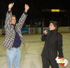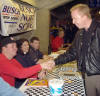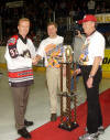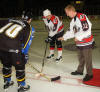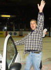 Drivers at the Portland Pirates (Portsmouth, NH, November 26, 2001) Pro All Star Series (PASS) drivers Benjie Rowe, Johnny Clark, Doug White, and Dale Shaw joined a group of Busch North Series drivers for a "Salute to Motorsports" prior to the Portland Pirates hockey game Saturday night November 24th. An autograph session and the appearance of the Johnny Clark and Doug White PASS Pro Stocks were all part of the DNK Select Used Cars of Farmingdale, ME sponsored evening at the Cumberland County Civic Center in Portland, ME. In addition to the PASS and BNS drivers, old friend Travis Roy stopped by to sign a few dozen books for the fans. Winston cup star Ricky Craven came by to drop the puck, sign autographs, and participating in the give-away of a Dodge Neon from DNK to a lucky fan.